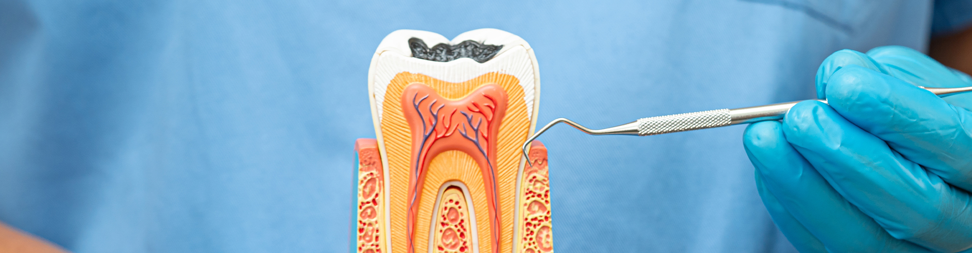 Inside the centre of your tooth, there is a soft tissue called pulp. The pulp contains nerves and blood vessels to help feed the tooth and help fight infections. A damaged tooth or deep tooth decay can lead to infection of the pulp, resulting in the need for a root canal.